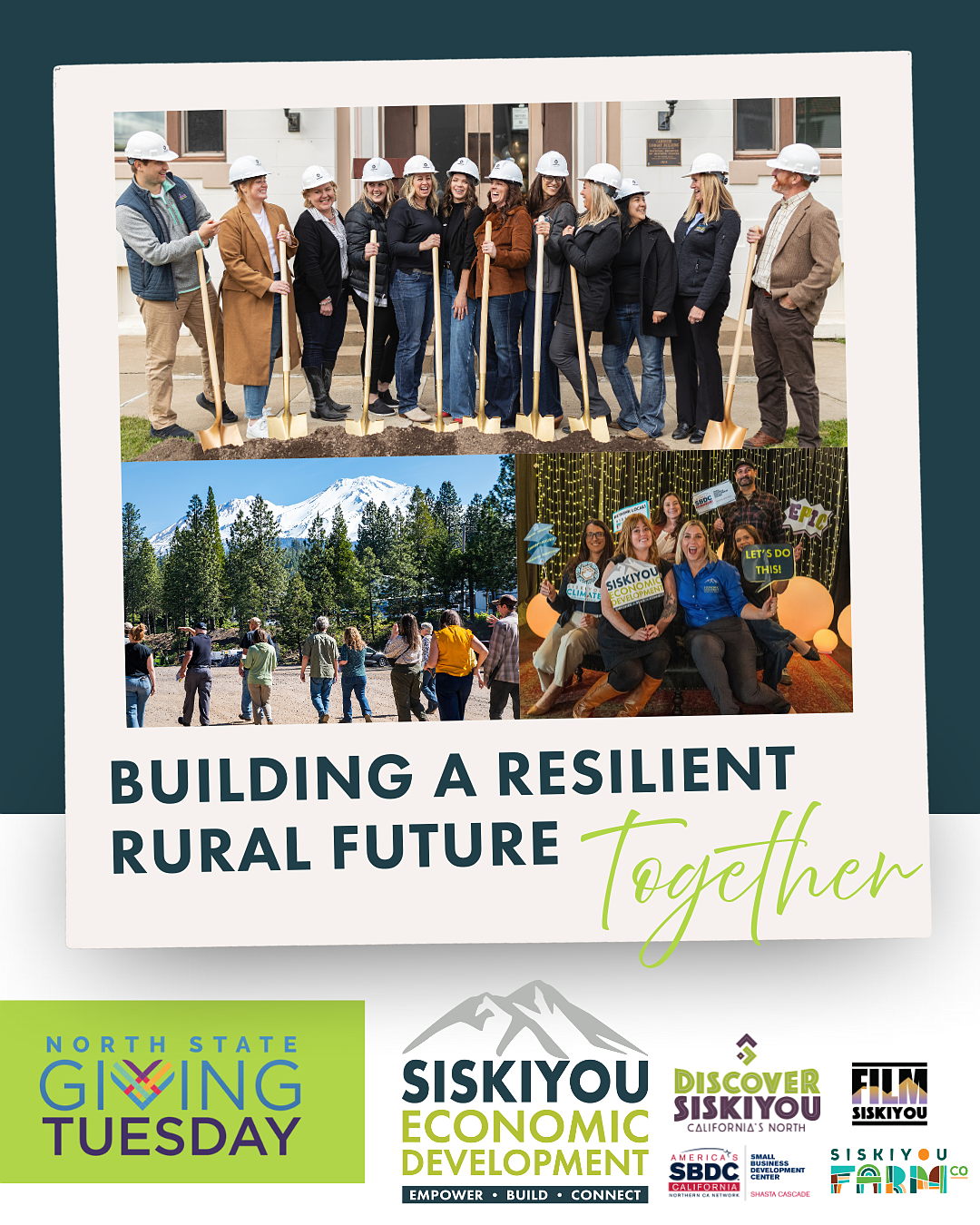This Giving Tuesday, become a catalyst for change. Your contribution to Siskiyou Economic Development is an investment in the future of our communities—a future brimming with promise, opportunity, and prosperity for all.